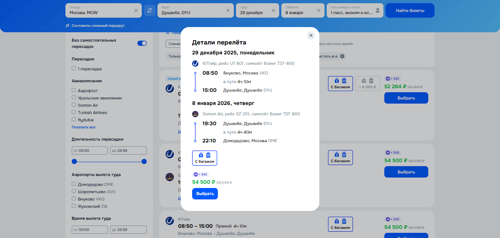 Из Москвы в Душанбе на Новый год 2026: авиабилеты и условия тарифов