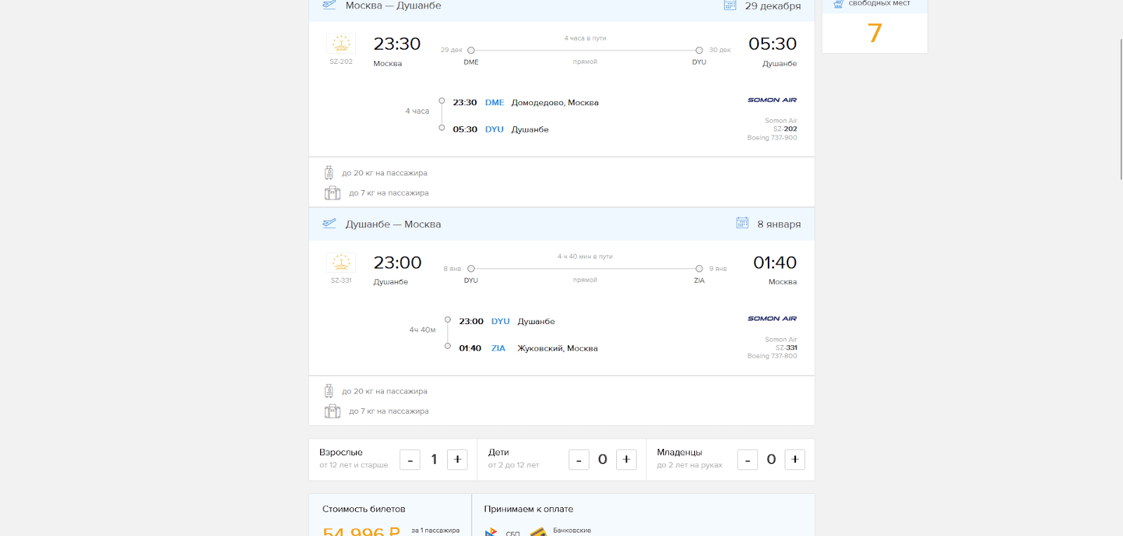 Время: в сторону Душанбе — 4 ч 5 мин., назад в столицу России — 4 ч 35 мин.