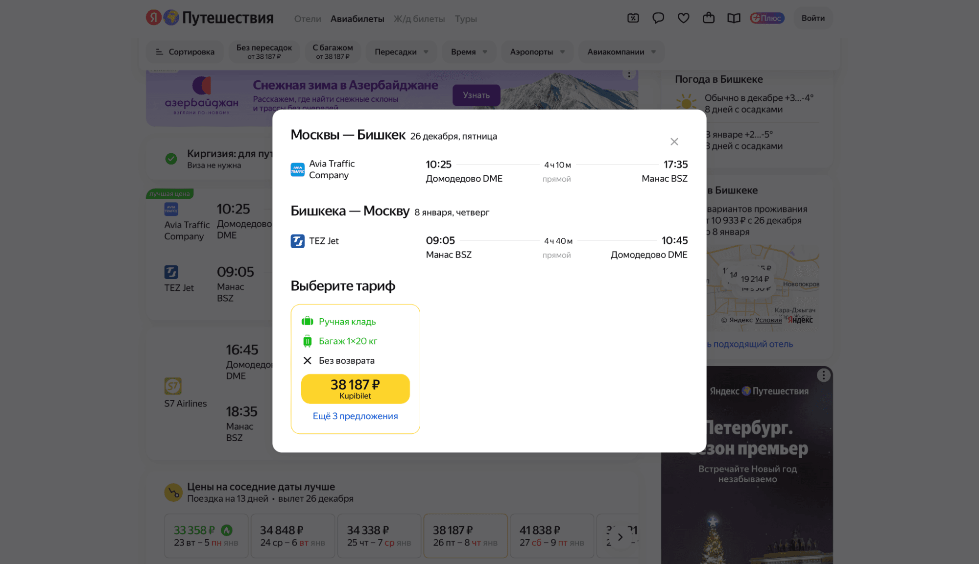 Как дешево улететь из Москвы в Бишкек на новогодние каникулы 2026: билеты и цены