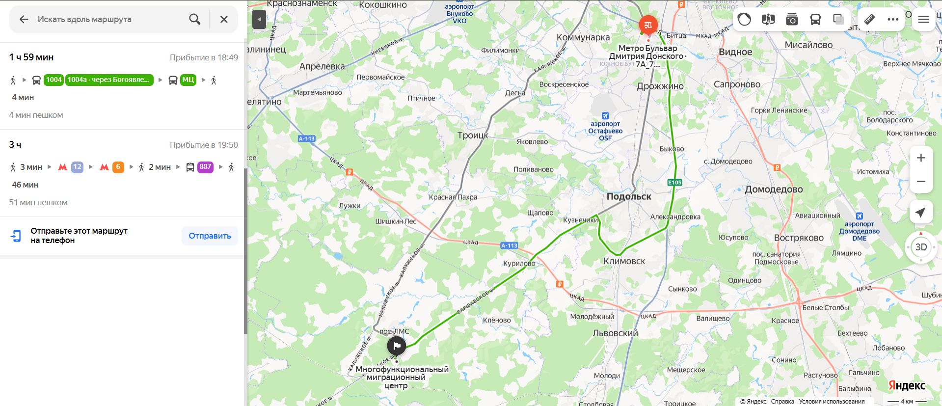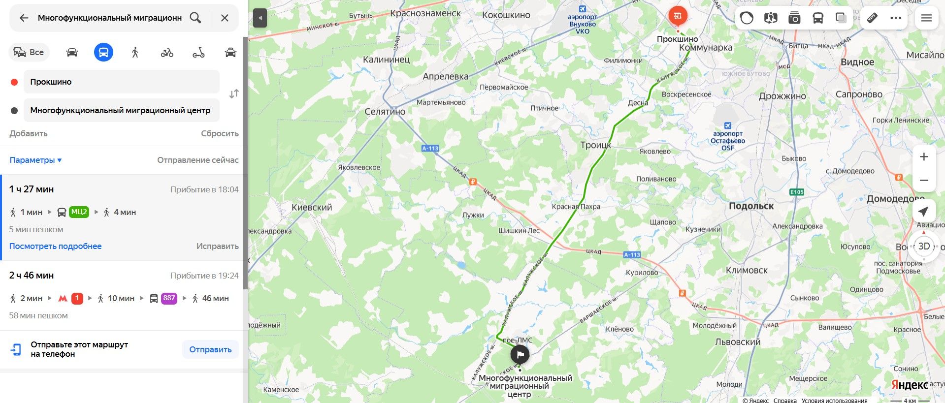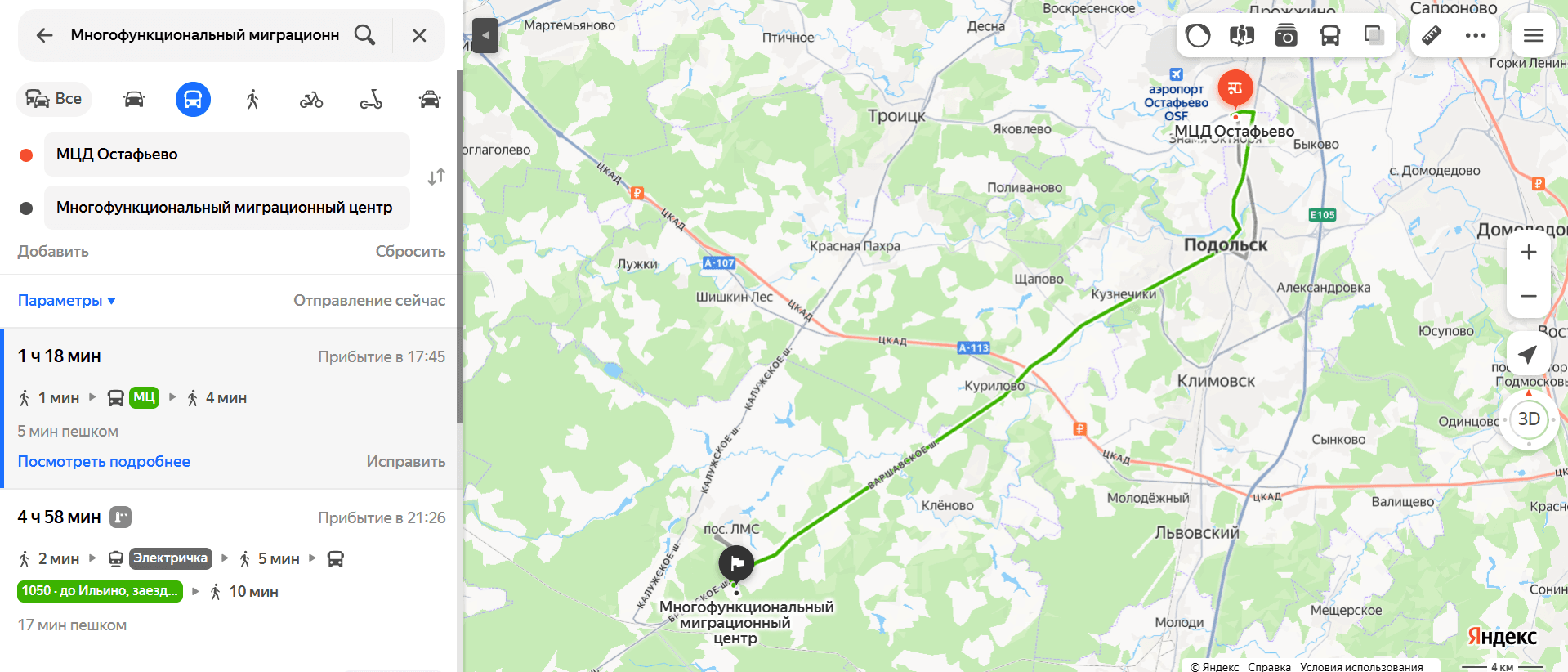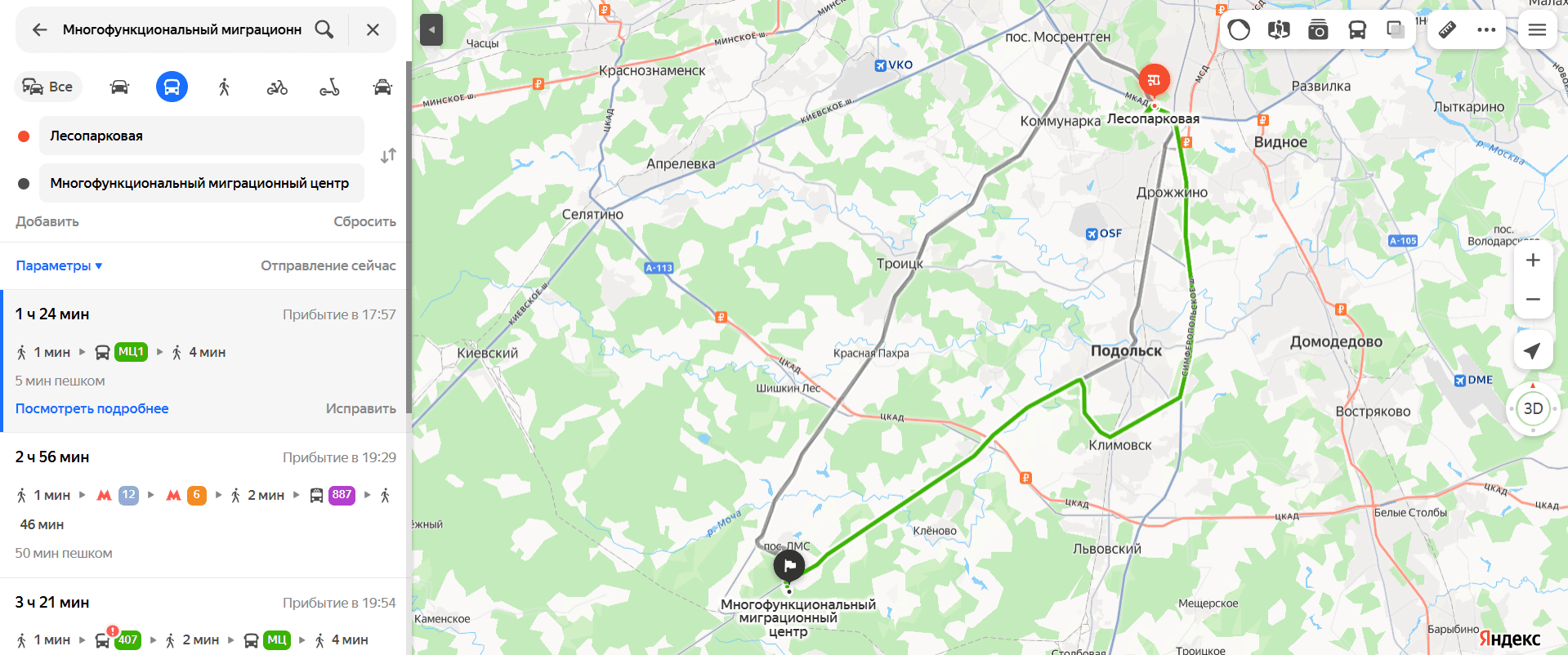 Среднее время в пути составит от полутора до двух часов. Для оплаты проезда подойдут карты «Тройка» или банковские. Нужная остановка так и называется — «Миграционный центр».