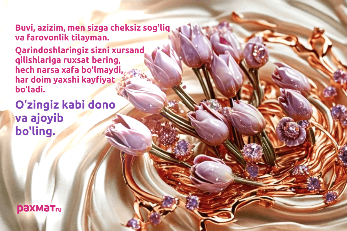 В преддверии праздника многие ищут теплые слова для самых близких. Особенно приятно звучат поздравления на родном языке. Для тех, кто хочет поздравить маму, бабушку или любимую на узбекском языке, мы подготовили подборку красивых открыток. В ней собраны самые трогательные и душевные изображения с пожеланиями, которые помогут передать внимание и заботу близким людям в этот весенний день.