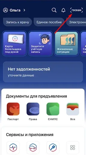 Последний вариант — средний по сложности. Если предпочитаете его, выберите кнопку «QR-код» — он отобразится на дисплее. Затем откройте на втором смартфоне «Госуслуги», в правом верхнем углу найдите «госкан» и наведите камеру на код из RuID. Подготовьте все для входа заранее — QR-код действует всего одну минуту.