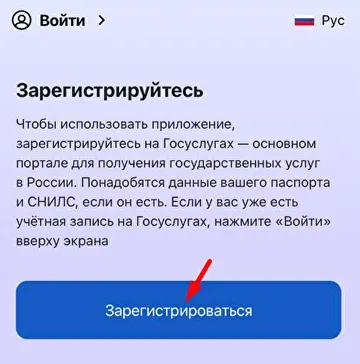 Если у вас нет аккаунта на «Госуслугах», регистрация займет чуть больше времени. Первым шагом нажмите на стартовом экране синюю кнопку. Дальше последуют страницы с подсказками — внимательно читайте информацию на экране и заполняйте необходимые данные.