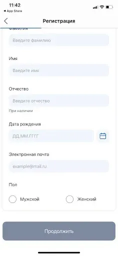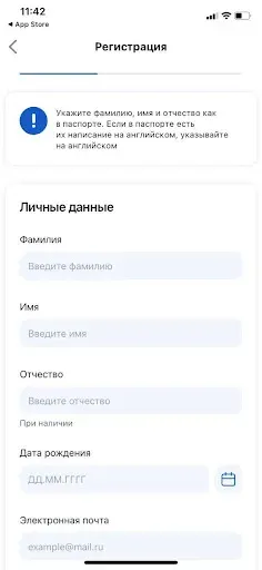 В открывшейся форме нужно указать фамилию, имя и отчество (если есть). Убедитесь, что они написаны так же, как в паспорте. Если в документе они представлены на английском языке, введите их на английском. Затем добавьте дату рождения, email и пол и нажмите «Продолжить».