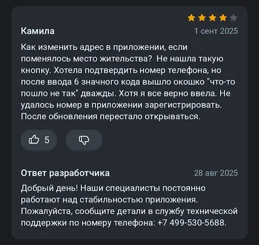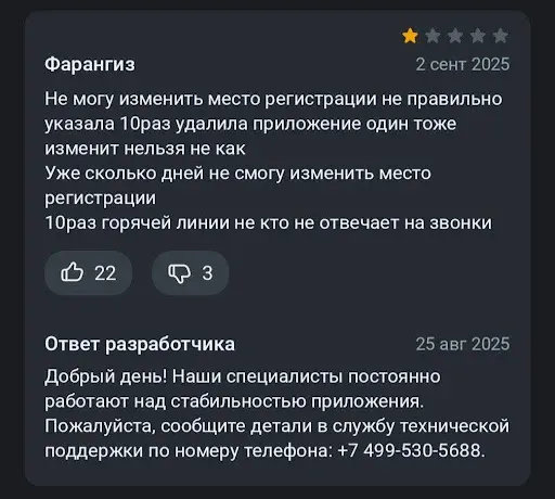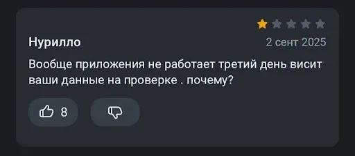 Пользователи жалуются, что после регистрации в приложении данные долго остаются в статусе «на проверке». Она может занимать нескольких дней, хотя формально все должно решаться за пару часов. Проблема не позволяет завершить учет и получить подтверждение регистрации.