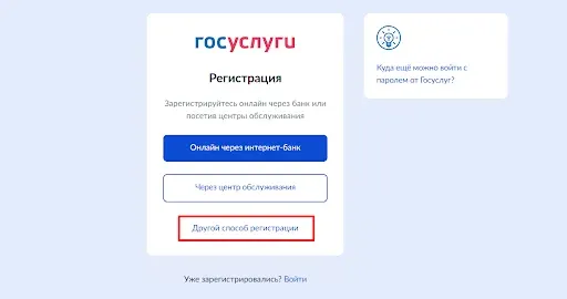 3.На экране появится несколько вариантов. Выберите «Другой способ регистрации».