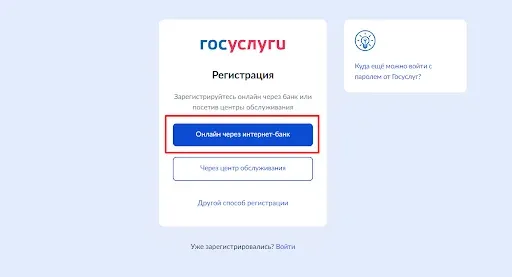 2.Выберите кнопку «Онлайн через интернет-банк».